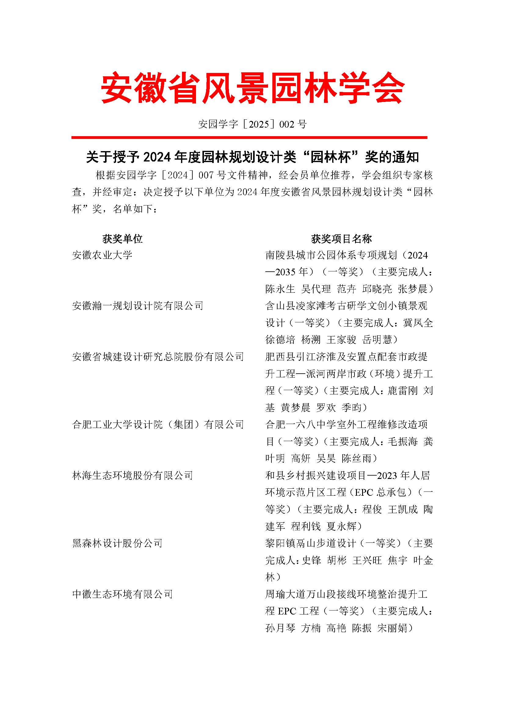 关于授予2024年度园林规划设计类“园林杯”奖的通知